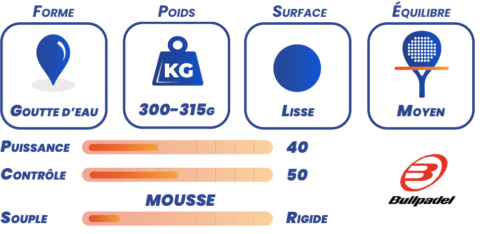 Avec sa forme en goutte d'eau, cette pala offre une polyvalence idéale grâce à son équilibre centré.